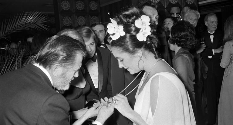 In 1972, Cartier presented the necklace to Richard Burton as a Valentine’s and birthday gift for Elizabeth Taylor during her 40th birthday celebrations in Budapest. It became a statement of their intense, legendary romance. In December 2011, Taylor’s estate sold the necklace for $8.8 million, setting a record for Indian jewelry.